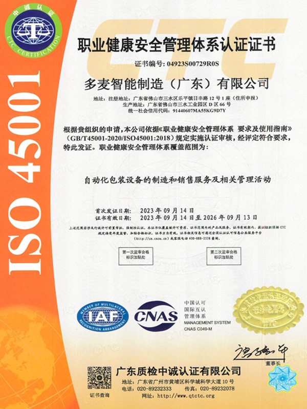 職業(yè)健康安全管理體系認(rèn)證證書(shū)