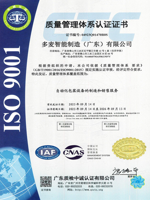 質(zhì)量管理體系認(rèn)證證書(shū)
